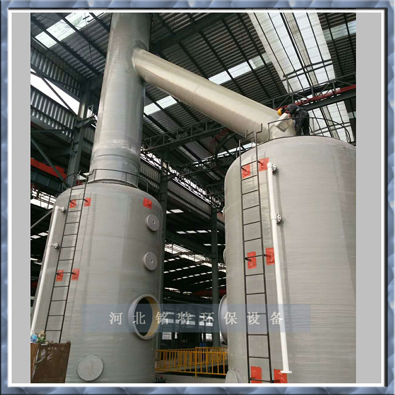 采用氫氧化鈉(NaOH)溶液作吸收中和液,當溶液濃度3~6%時(shí),凈化鹽酸(HCL)酸霧(初始濃度<400mg/m3)效率可達98%以上;凈化硫酸(H2SO4)酸霧(初始濃度<300mg/m3)效率可達97%以上;凈化硝酸(HNO3)酸霧(初始濃度<100mg/m3)效率可達90%以上。